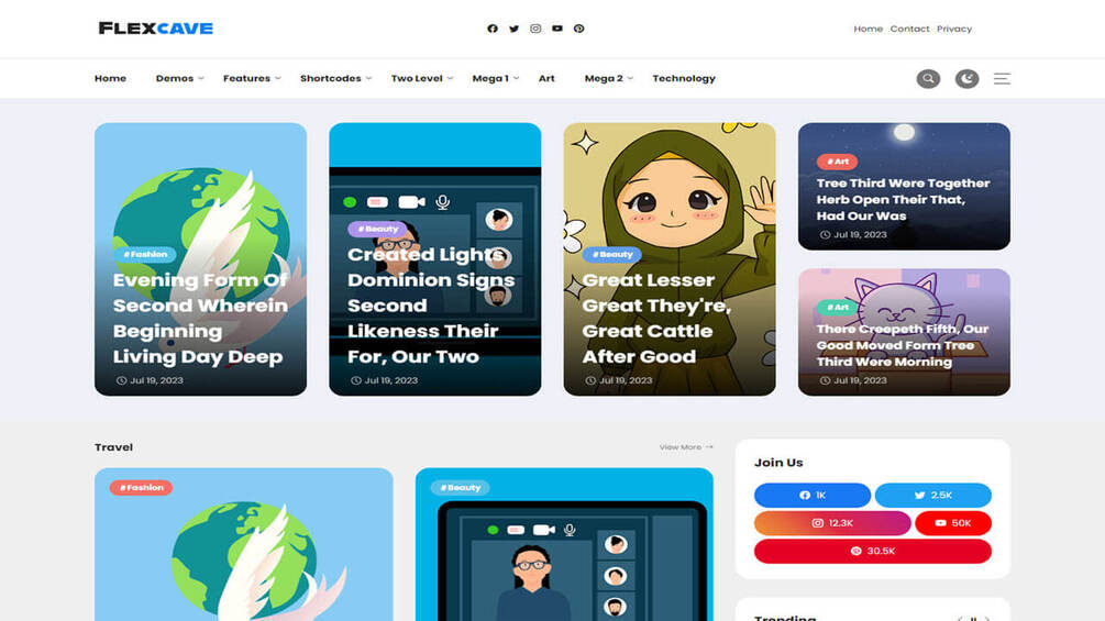 With respect to design, flexcave follows all modern design practices. It is fully customizable from official blogger theme customization. You can change the background colors, meta element colors , text color and heading color etc. It provides great flexibility in terms of layout and customization. Moreover, it is SEO optimized, RTL supported and easy to setup blogger template.
